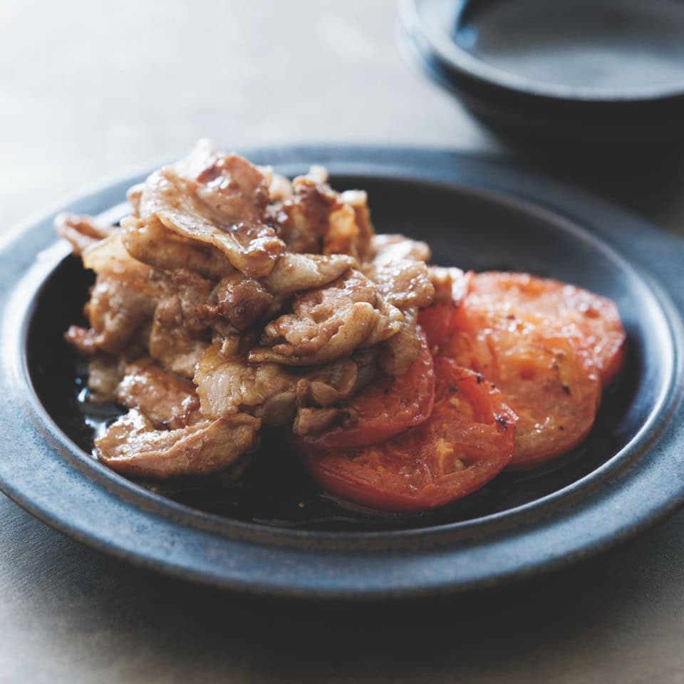③ ❷のフライパンをきれいにし、米油小さじ1を中火で熱する。豚肉を入れ、両面を色が変わるまで焼いて端に寄せる。空いたところにAを加えて煮立たせ、豚肉とからめる。器にトマト、豚肉を盛る。