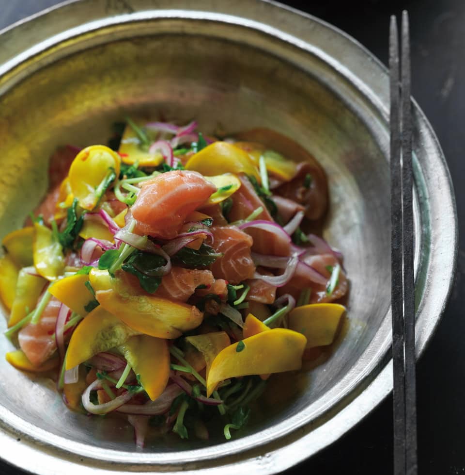 脂がのったサーモンにエスニック味が食欲そそる! タイ風ごちそうサラダ『サーモンと野菜のヤム』