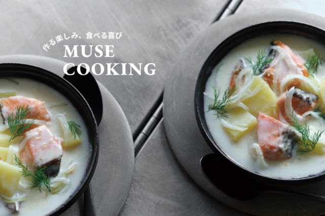 魚料理は手間がかかって難しそう……と思っていませんか? 刺し身や切り身魚を使えば、パパッと短時間で調理ができます。簡単な魚料理をレパートリーに加え、日々の献立にはもちろん、忙しいときや献立に悩んだときにも役立ててください。今回ご紹介するのは、ホワイトソースを使わずに作る『鮭とじゃがいもの北欧風スープ』。ごろりと大きめに切った鮭が主役の一皿です。