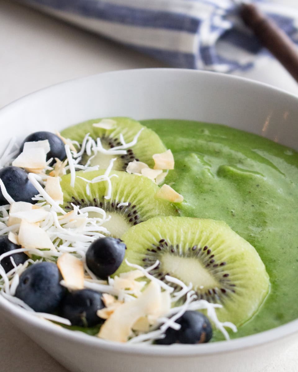 グリーンスムージーは消化もよく必要な栄養素を手軽に摂取できるから、朝食に取り入れたら1日元気に過ごせる! ココナッツの食感がアクセント。