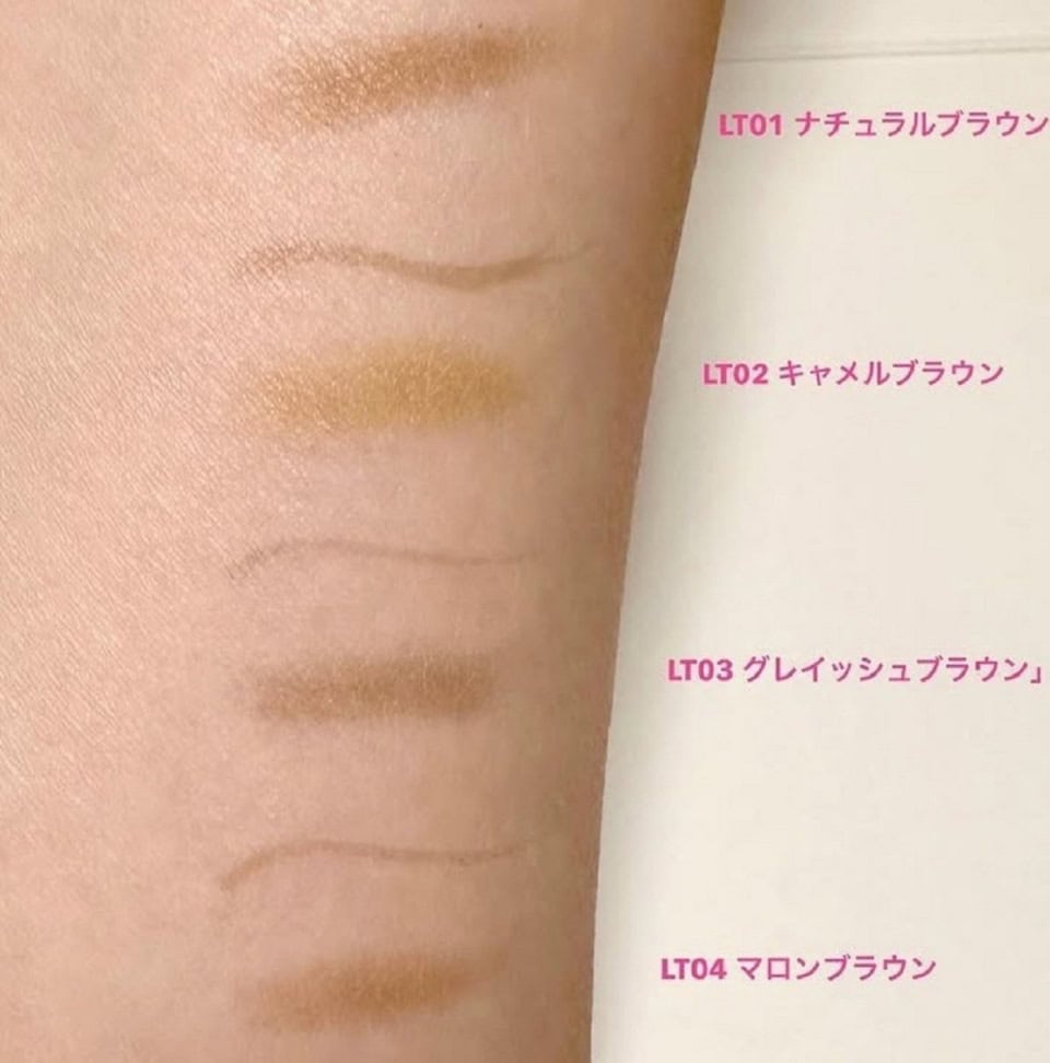 カラーは自然な髪色になじむ「LT01 ナチュラルブラウン」、明るめの髪色になじむ「LT02 キャメルブラウン」、暗めのブラウンヘアや黒髪になじむ「LT03 グレイッシュブラウン」、赤み系ブラウンヘアになじむ「LT04 マロンブラウン」の4色。