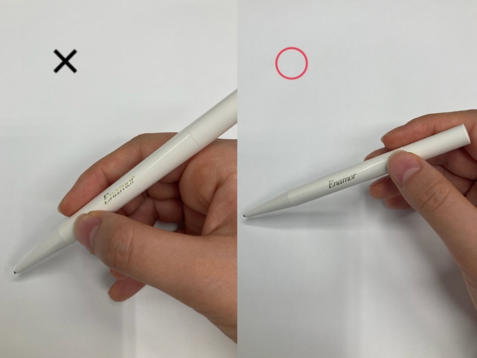アイブロウペンシルを使用する時、ペンを持つように持っていませんか? 安定感はあるものの、筆圧が強くなってしまい、濃く太い眉になる原因になるそうです。正しくは、後ろの方を持つ! 自ずと筆圧が弱くなり、優しいタッチが実現。