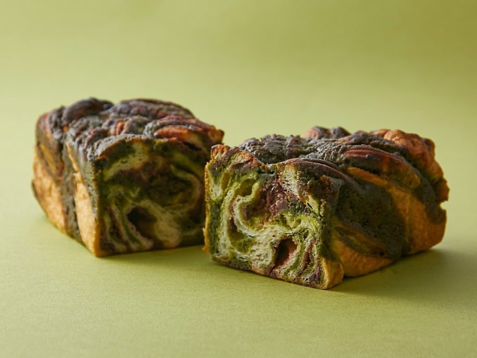 「抹茶あずきバブカ」は、抹茶と北海道あずきに加え、ホワイトチョコレートを使用。鮮やかな緑色が目を引く、見た目の美しさも特徴です! 抹茶とたっぷり入った粒あんが、口いっぱいに広がります。トーストして、あずきのほっくり感を楽しむのがオススメの食べ方です。