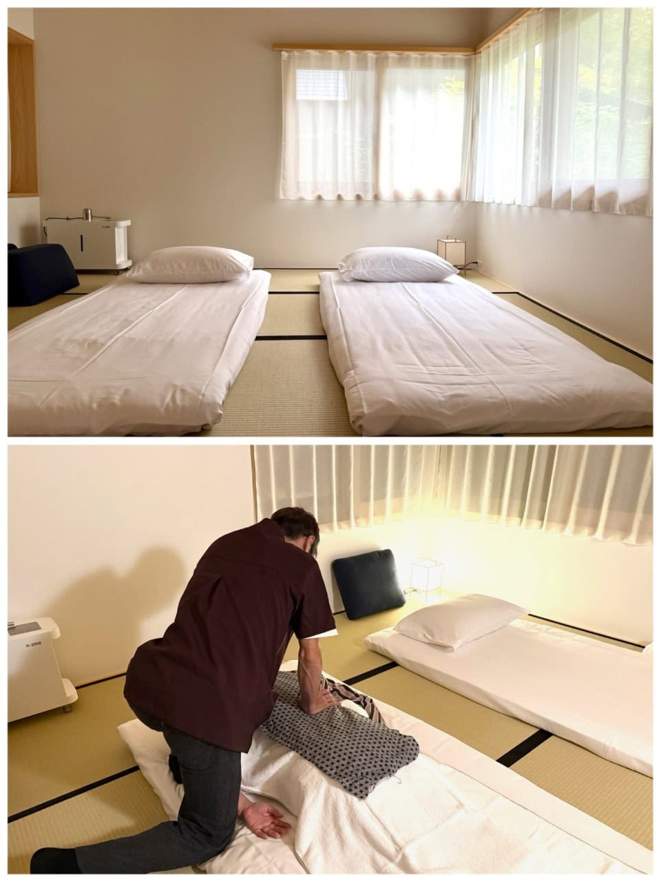 入浴後はトリートメントルームで「指圧マッサージ」を受けるのも最高の流れ。2名同時の施術も可能です。60分間11,000円、90分間16,500円(いずれも税・サービス料別)。その他に水素ガス吸入器やハイパーアイス、ノルマテックなどの最新機器で運動後の疲労をリカバリーするなど、多彩なメニューが。