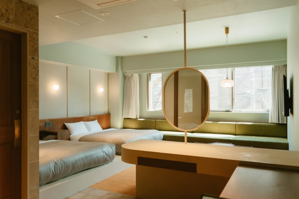 落ち着いたトーンのカラーや曲線的なフォルムを取り入れたデザインホテル、Hotel Vintage 目黒不動前。ミッドセンチュリーモダンなインテリアを採用した客室は大きく窓を取ることで自然光が差し込み、開放感のある明るい空間に。都心の喧騒から離れた穏やかなロケーションで、地域に根ざした新しいホテルのあり方を感じることができます。
