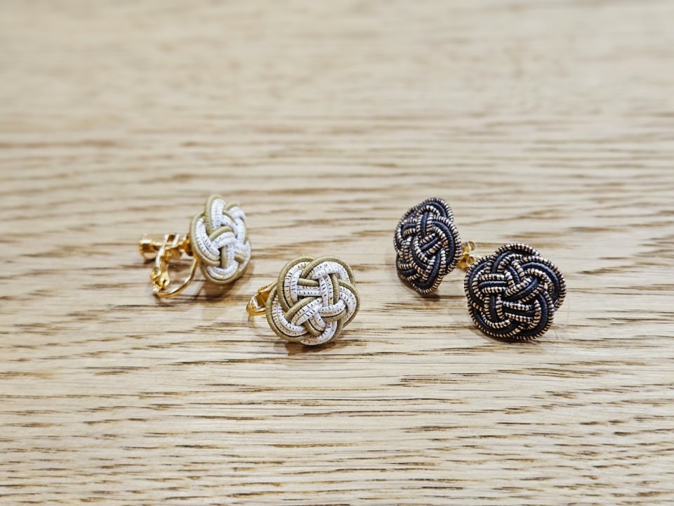 水引の端をカットし、ボンドでイヤリングやピアスの金具に固定させれば完成! 同じデザインでも色の組み合わせ次第、色の順番次第でも、無限大に印象変化可能。手先の作業が好きなライター門司、結び方は忘れてしまったのでもう一度習わないとですが、ハマり出したら抜け出せなくなりそうな楽しい世界です(笑)。