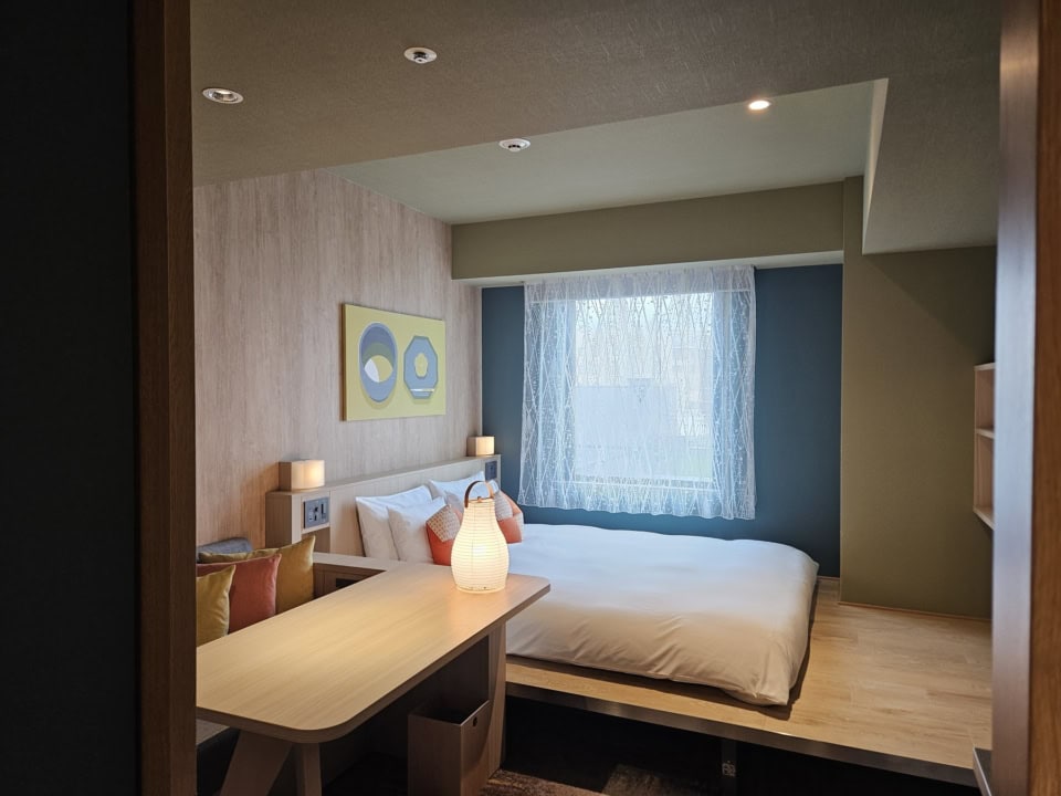 客室はニーズに合わせて6タイプ、全101室あり、今回は「クイーンルーム」に宿泊させてもらいました。入り口で靴をぬぎ、スリッパなしで寛げるスタイル。広々としたクイーンサイズのベッドに、作業スペースとしても使える大きなデスク付き。PC作業もこなしながらの滞在にもぴったり。バスルームにはもちろんバスタブがあり、洗面台も広々。ベッドの下にはトランクが収納できるスペースもあり、長期滞在にも◎。