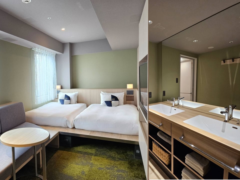 スーペリアルームはツインベッドに洗面台がふたつ、バスタブつきバスルームつき。洗面台がふたるあるのは朝の準備の際に渋滞しなくて済むし、ありがたい気遣いですよね! 女子旅に、親子旅に、カップル旅にもおすすめです。ほかにも家族旅・グループ旅におすすめの定員5名でキッチン付きの客室「OMOハウス」も人気だそう。