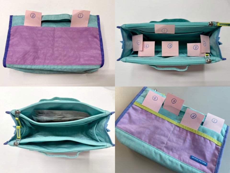 内側に6ポケット、側面表には4ポケット、側面裏に2、ジップ付きコンパートメント。整理整頓しやすい理由が一目瞭然!
