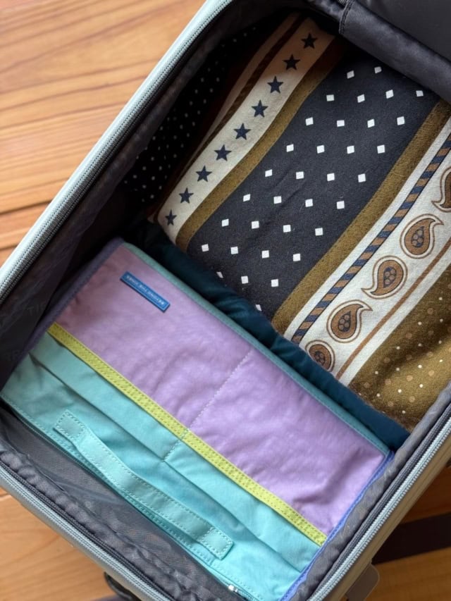 今回はスキンケアライン4品、シャントリ、歯ブラシ、バーム2種にシートマスクをIN。こんなに入っているのに、ホントにコンパクトになるのが素晴らしい! 美容マニアにはたまらない優秀さです。