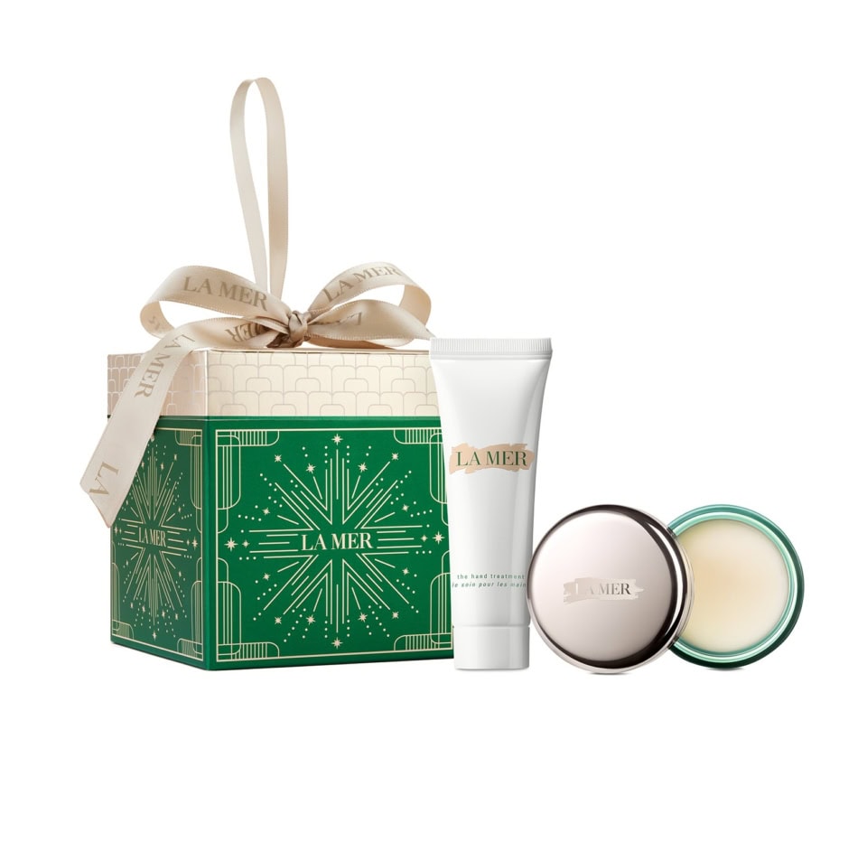 ミントの香りが爽やかなリップバームの現品サイズと、しっとりとした手肌へ導くハンドクリームのセット。オーナメントとしても楽しめる限定ボックスに収められた、ラグジュアリーなパーツケアコレクションは、ギフトにもオススメです。