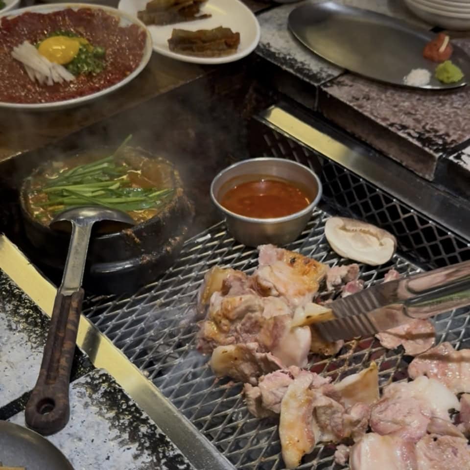 『山清炭火ガーデン(サンチョンスップルガドゥン)乙支路1号店』は、今回ぜったいに行くと決めていたお店。「CATCH TABLE(キャッチテーブル)」という韓国で飲食店を予約する時によく使われるアプリで平日の昼間に予約したら、なんとすぐに入れて幸! ここのユッケが最高で、人生NO.1ユッケでした!