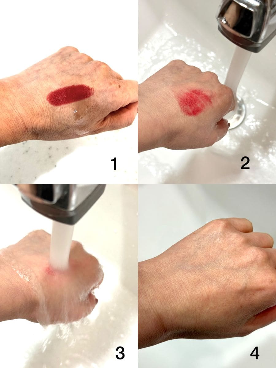 濃いめのリップも御覧の通りスッキリオフ! 所要時間はたった8秒という驚異的なスピードでした。