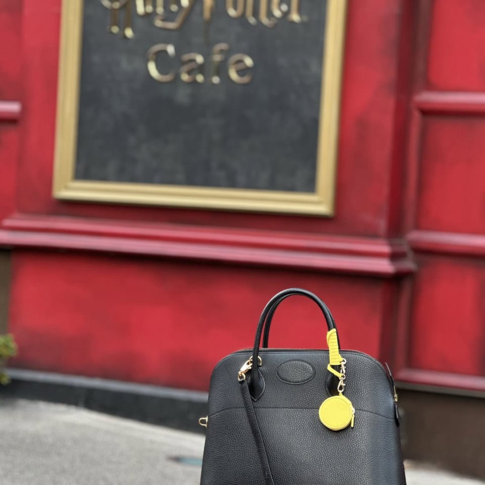 カラフルなレザーアイテムの中から選んだのが、コード2色と小さなコインケース1個(日本円で合計約16,000円でした)。バッグのハンドルにぐるぐる巻きつけたり、ぶら下げたりして、アクセントにしています。