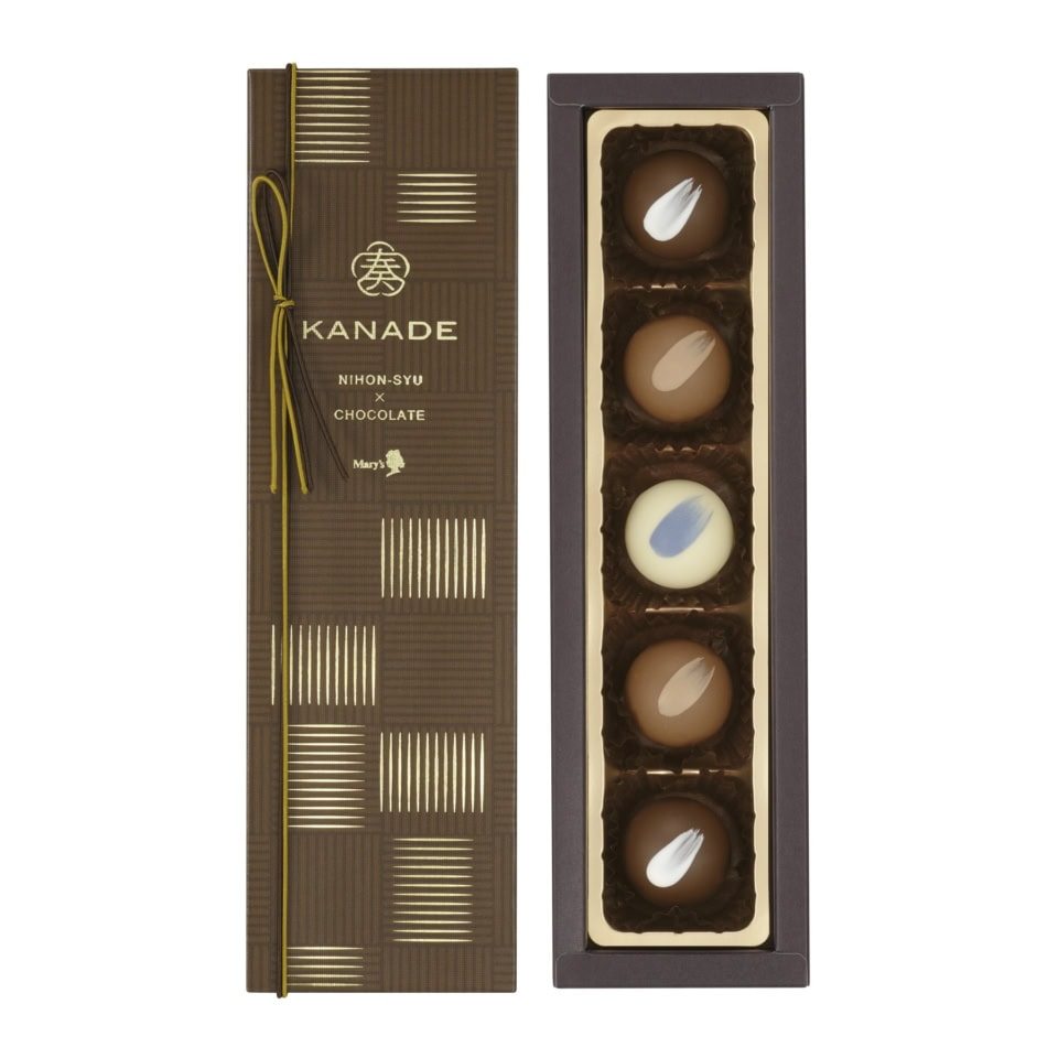 国産素材の銘柄・産地にこだわった、日本茶や苺のシリーズが人気の「奏 -KANADE-」に「日本の酒」のフレーバーが仲間入り。シリーズを監修する大石茂之トップショコラティエが最も得意とする日本酒とチョコレートのマリアージュは期待大! お酒好きの方に最適なギフトです。