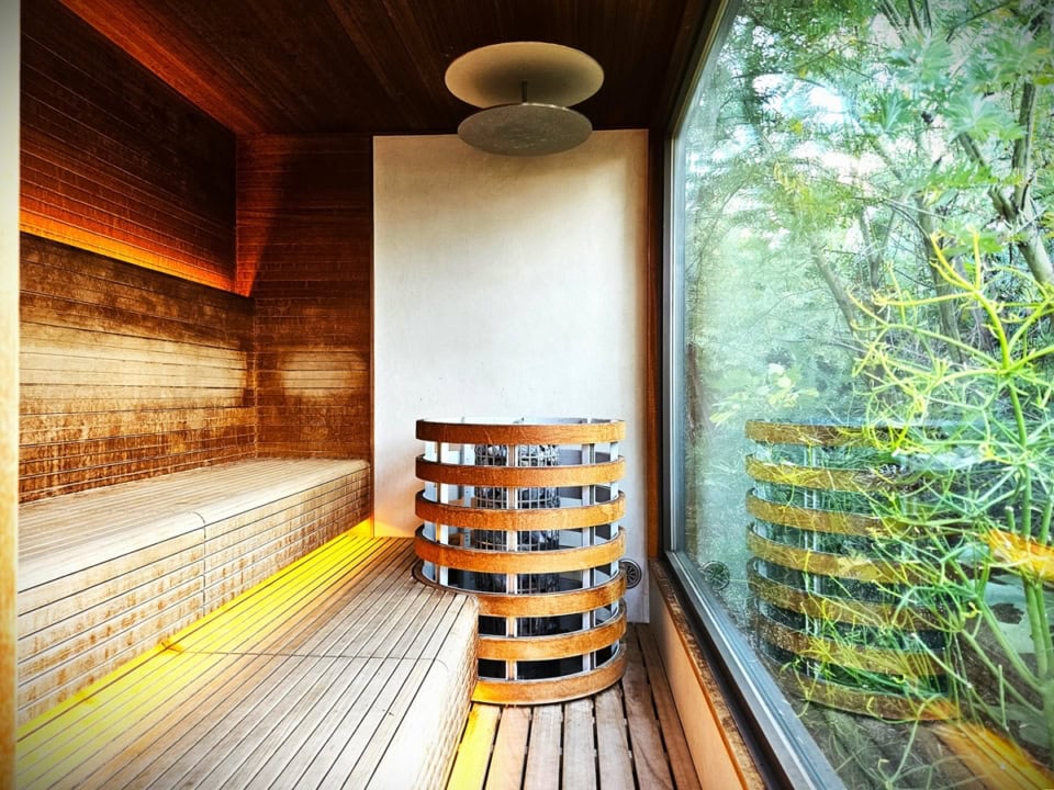 プールサイドにあるもうひとつのサウナ「SWEAT BOX」にはガラス張りの大きな窓があり、見事なボタニカルビュー! 冬にぬくぬく温まるのはもちろん、夏にはサウナ、冷水シャワー、プールの無限トライアングルを楽しむのも気持ちよさそう♪