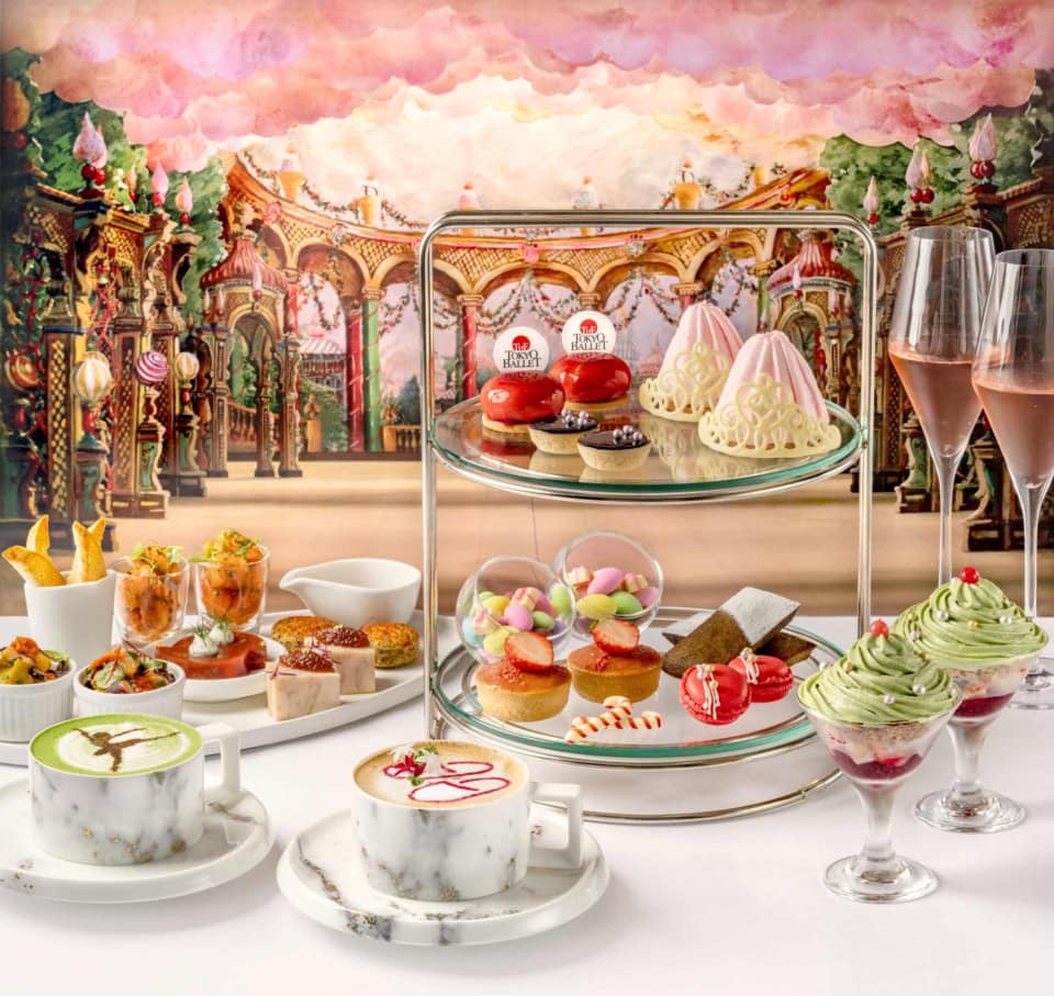 今回のアフタヌーンティーは、東京バレエ団の『くるみ割り人形』公演第2幕「お菓子の国」に着想を得たもの。各国の踊りのシーンからインスピレーションを受けたスイーツ、セイボリー、ドリンクが揃い、物語の記憶が呼び覚まされるような構成です!