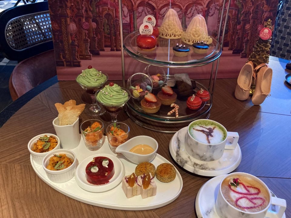 今回のアフタヌーンティーは、東京バレエ団の『くるみ割り人形』公演第2幕「お菓子の国」に着想を得たもの。各国の踊りのシーンからインスピレーションを受けたスイーツ、セイボリー、ドリンクが揃い、物語の記憶が呼び覚まされるような構成です!