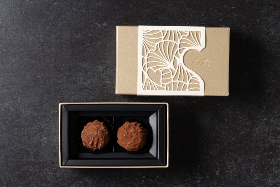 昨年に続き、今年も至高のトリュフがお目見え。使用されているラムは、「クレマン」の15年もの。カカオ66%のチョコレートと合わせ、ラムの芳醇な香りからチョコレートのほろ苦さへと移ろいゆく変化を楽しめる贅沢な一粒です。自分へのご褒美としても最適。