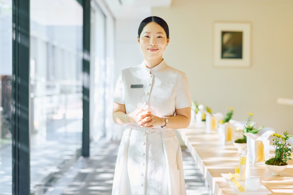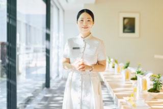 今回のイベントに合わせて韓国から来日したブランド創設者のオリビア・チョイさん。透明感溢れるキメの整った美肌に目を奪われます。
