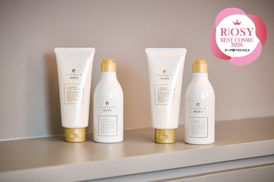 数あるアイテムの中で、堂々の1位に輝いたのは、圧倒的な補修力で、極上のツヤ髪に導くフローディアモアのシャンプー&トリートメント!