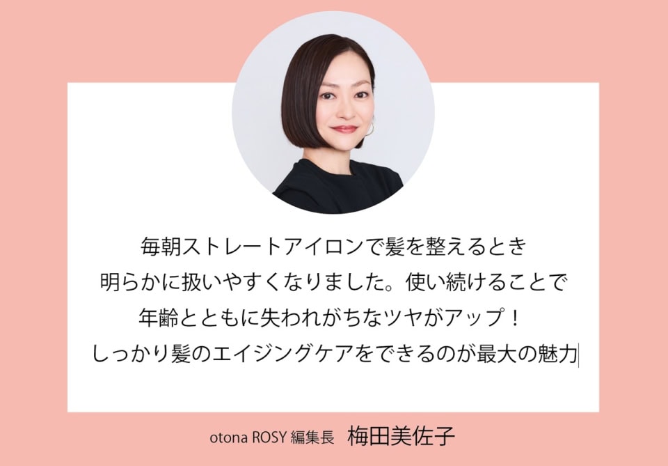 「髪1本1本がぷるんと潤うのに、重さはなく、さらツヤな仕上がりで、頭まで軽くなる感覚。それなのに毛先までしっかりまとまって、時間がたつと広がりやすかった髪がきちんと収まるように。使い続けるうちに髪がどんどん柔らかくなり、うねりも気にならなくなってきました!」