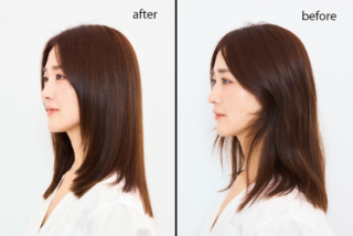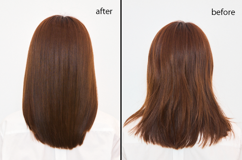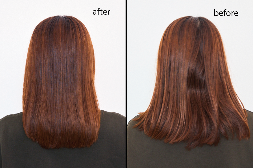 システムトリートメント後は、内側のうねりに加え、表面に目立っていたパサつきも落ち着いて、驚くほどなめらかな質感に。毛先のまとまり感も大幅にアップ。