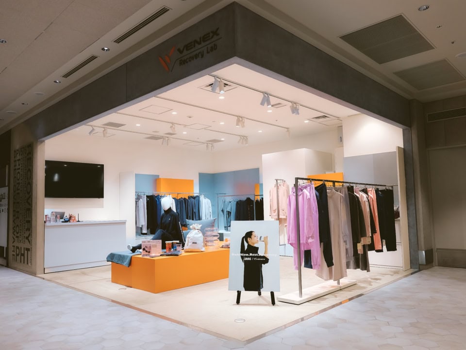 日本橋高島屋S.C.新館にある旗艦店VENEX Recovery Lab. フラッグシップモデルからインナー、パジャマまでの人気のアイテムを豊富に取り揃えています。