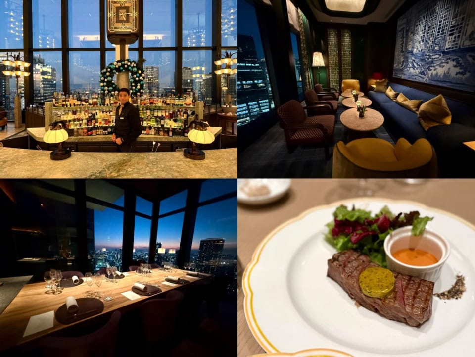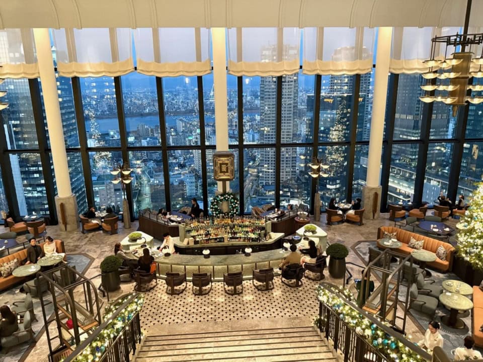 1階のエントランスからエレベーターで29階へ上がると、大阪市内の眺望が広がります。世界的建築家アンドレ・フーが手掛けた空間は、アールデコと日本の工藝技法が融合したラグジュアリーなデザイン♡ ホテル内にはブランドを象徴するラウンジ&バー「ピーコック・アレー」、1920年代のジャズ・エイジの雰囲気を彷彿させるバー「ケーンズ&テイルズ」、モダンフレンチブラッスリー「ジョリー ブラッスリー」、最高級の日本料理を提供する「月見」の4つのレストランとバーが美食家たちの心をくすぐります。