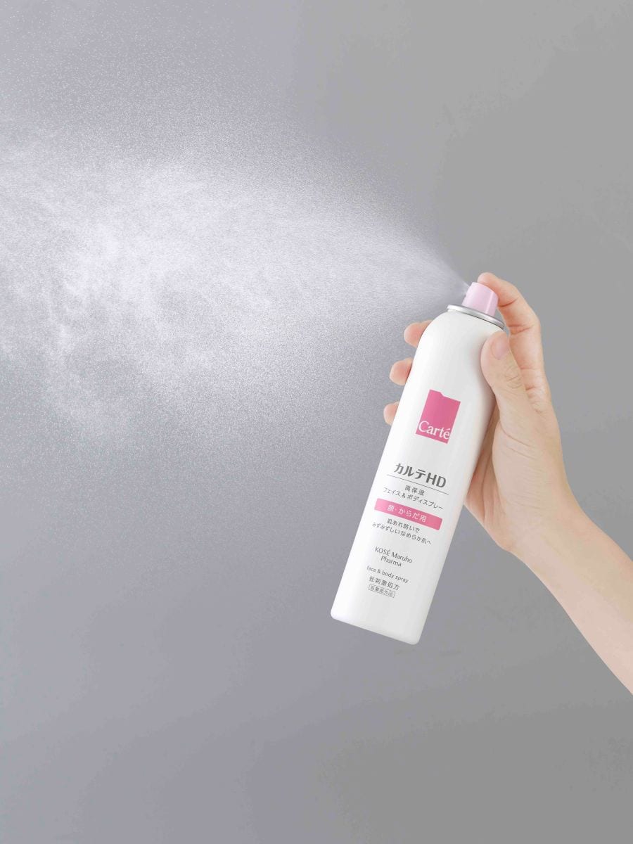 入浴後、間髪いれずに全身スプレー! 細かいミストがとっても気持ち良い~。カルテHD モイスチュア フェイス&ボディスプレー 250g ¥2,750[医薬部外品](コーセー マルホ ファーマ)