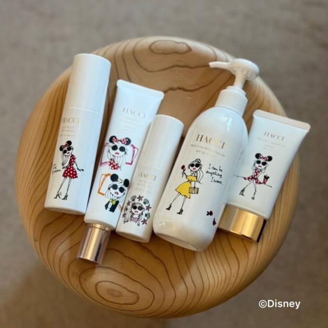 毎年人気のHACCIの限定アイテム! 今年はファッションディレクターDaichi Miuraさんが描くDiDi La Chignonをあしらったデザインが登場。サングラスとお団子がトレードマークのDiDi La Chignonが表現するディズニーの世界観がとってもキュート♡ って、パッケージももちろん可愛いのですが、otona ROSY編集部がオススメしたいのは、このUVケアのクオリティなんです。