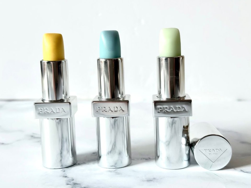「男女問わず使用できる!」「パッケージのビジュも効果も最高♡」と超絶売れている、ブルー、グリーン、バナナイエローの「プラダバーム」。メイクとケア効果の両立を可能にし、ブランドを代表するシグネチャーアイテムとして不動の人気に。