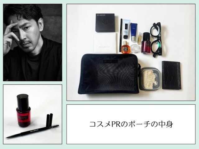 シュウ ウエムラPRの【ポーチの中身】イケオジ感にマストな「眉メイク」&「保湿」ができる人気コスメをチョイス