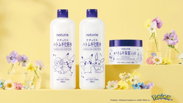 今回数量限定で発売されるポケモン仕様パッケージは全部で3種。「ハトムギ化粧水」はピカチュウとイーブイ、もしくはピカチュウとポッチャマから選ぶことができます。天然植物由来の保湿成分ハトムギエキスが配合されたハトムギ化粧水は、浸透力に優れ、つけた瞬間からどんどん肌になじんでいくのが特徴。使い心地はさっぱりしているので、脂性肌の方でも気持ちよく使うことができます。