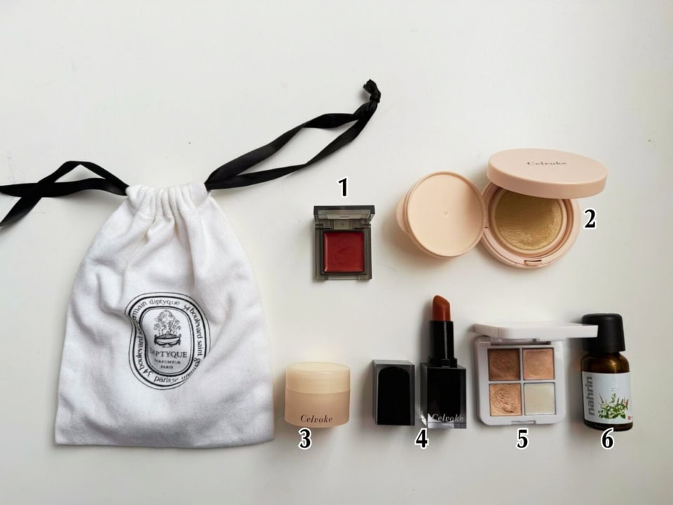 セルヴォークPRの【ポーチの中身】ミニマム派には巾着が◎! 香りもの&ポイントメイクを厳選した実用的ポーチ