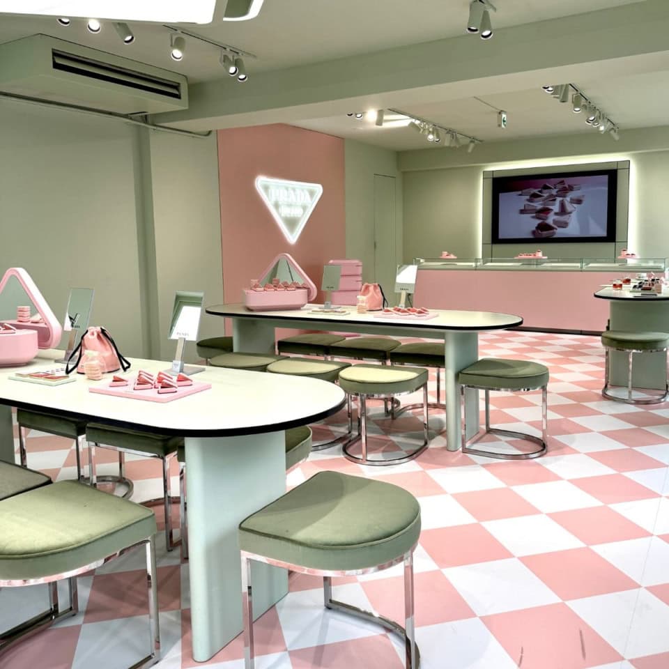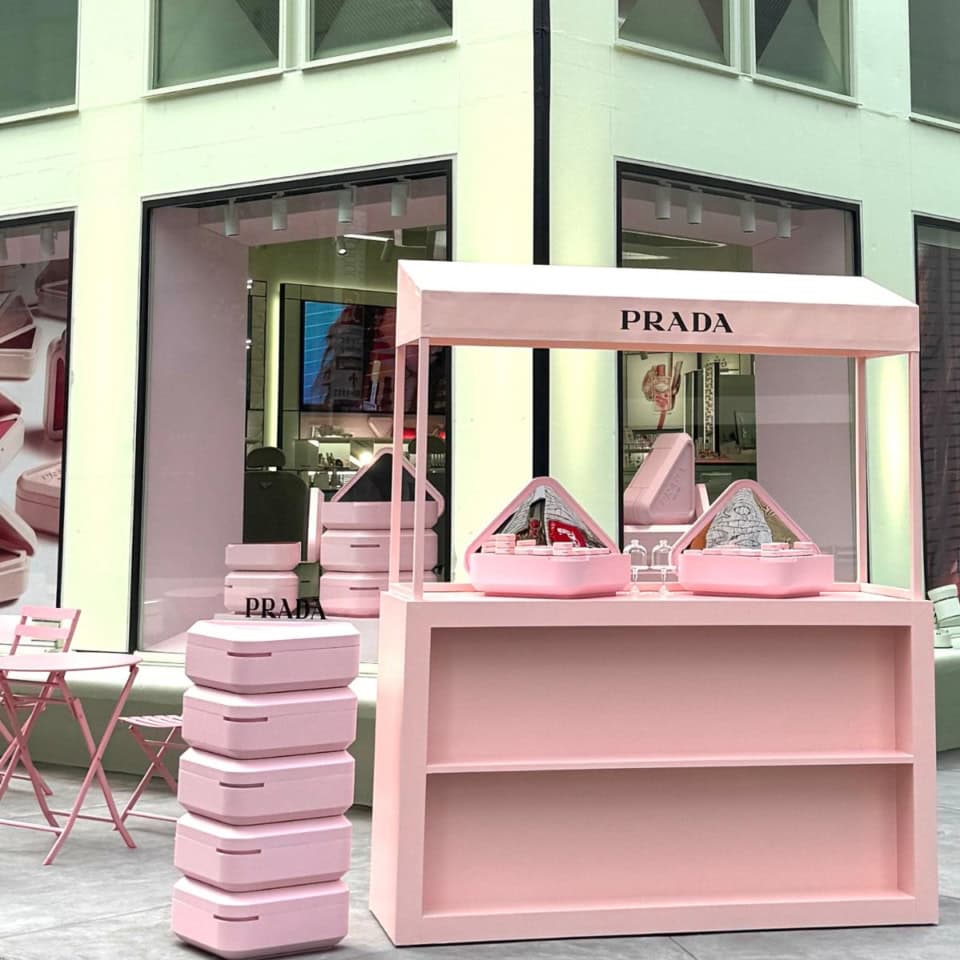 会場でまず目を引く、思わず「可愛い!」と声が出てしまうピンクスタンド。ここでしか体験できない特別な空間で、店内だけでなく外でも「プラダ タッチ」の世界観に浸れるのが魅力です♡