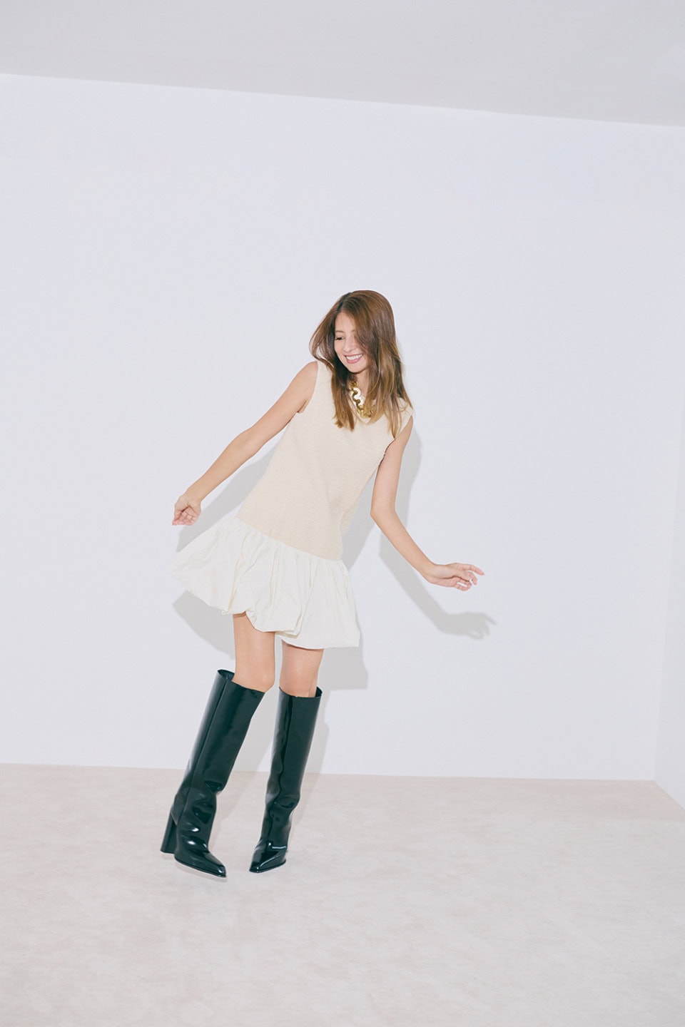 ドレス¥217,800、ネックレス¥184,800、ブーツ※参考商品(全てパトゥ/イザ)
