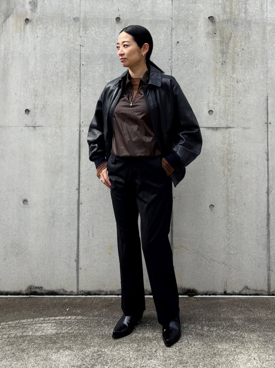 「久しぶりにクラシックなアイテムが気になっています。今回はLOEFFで定番として人気のA2フライトジャケットを主役に、ネイビー×ブラウンの配色で今年らしくアップデートしてスタイリングしてみました」