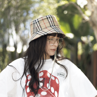 プリントT×チェック柄ハットの組み合わせも。岩堀せりのルール無用なTシャツスタイルが素敵