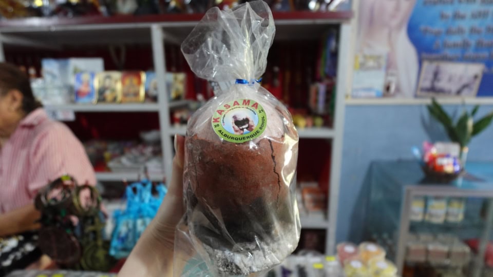 教会のスーベニアショップで出合ったのが、ボホール島の南部でのみ作られている塩、【アシン・ティブオク(Asin Tibuok)】。海水をココナッツの殻の灰で濾過し、土器で長時間煮詰めて作られる、完全手作業のお塩。土器を割らないと取り出せないほど硬く、見た目はまるで工芸品!