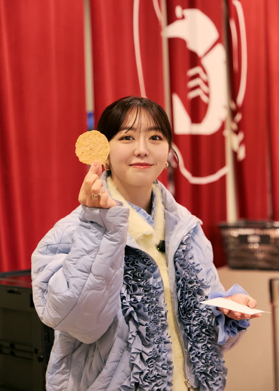 食べ比べが楽しい試食は毎日40種類から日替わりで提供。峯岸さんが持っているのは、薄いパリッとした食感に手が止まらない「はませんたこうす焼」¥756