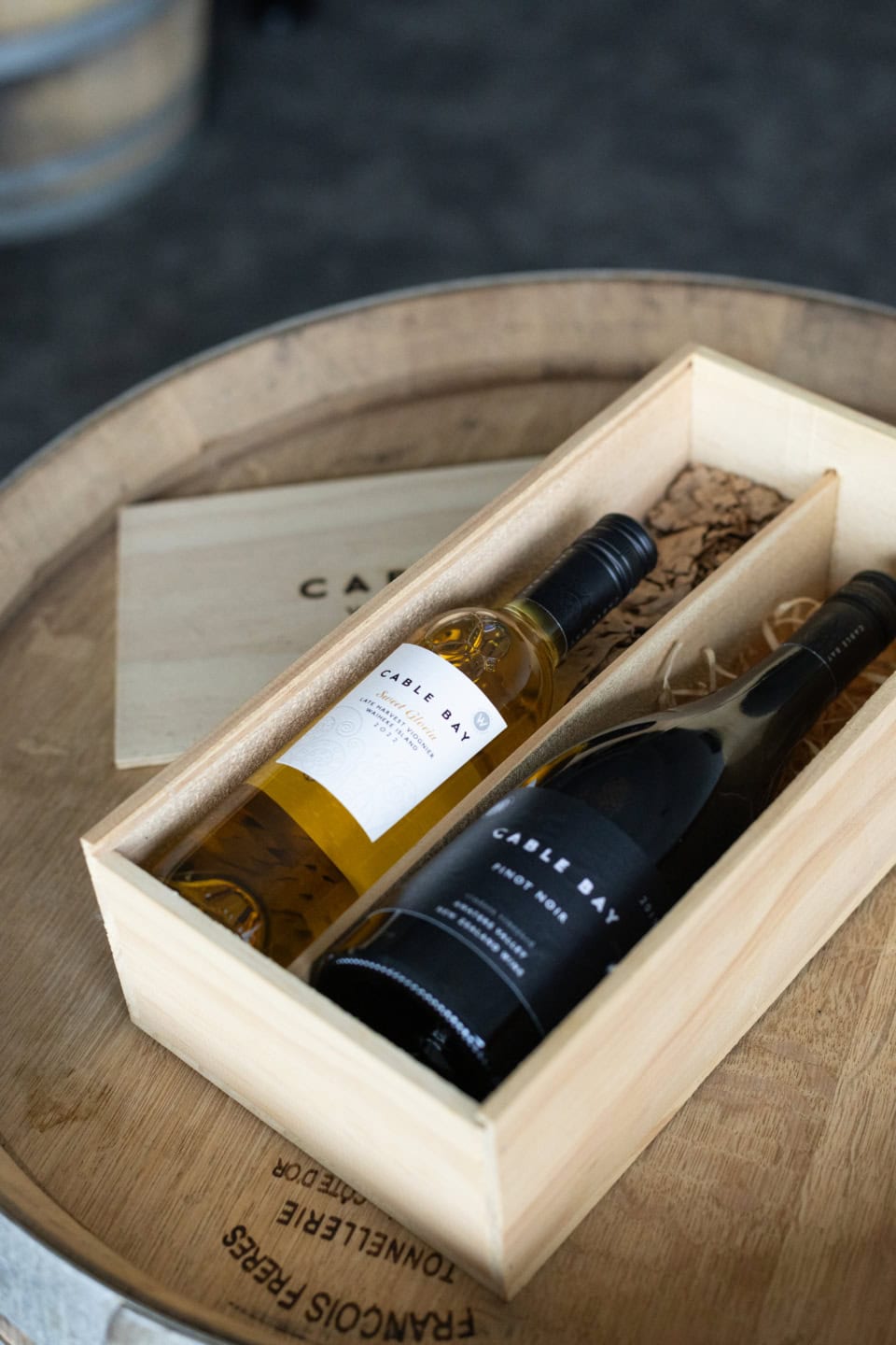 ワイヘキ島のアティアティア桟橋から車で5分と、アクセスしやすい場所にある「ケーブル・ベイ」。ここは受賞歴のあるワインに加え、海を見渡せる絶景レストランやヴィラなども併設しているのが特徴で、ワイヘキ島でマストで訪れるべきワイナリーでもあります。