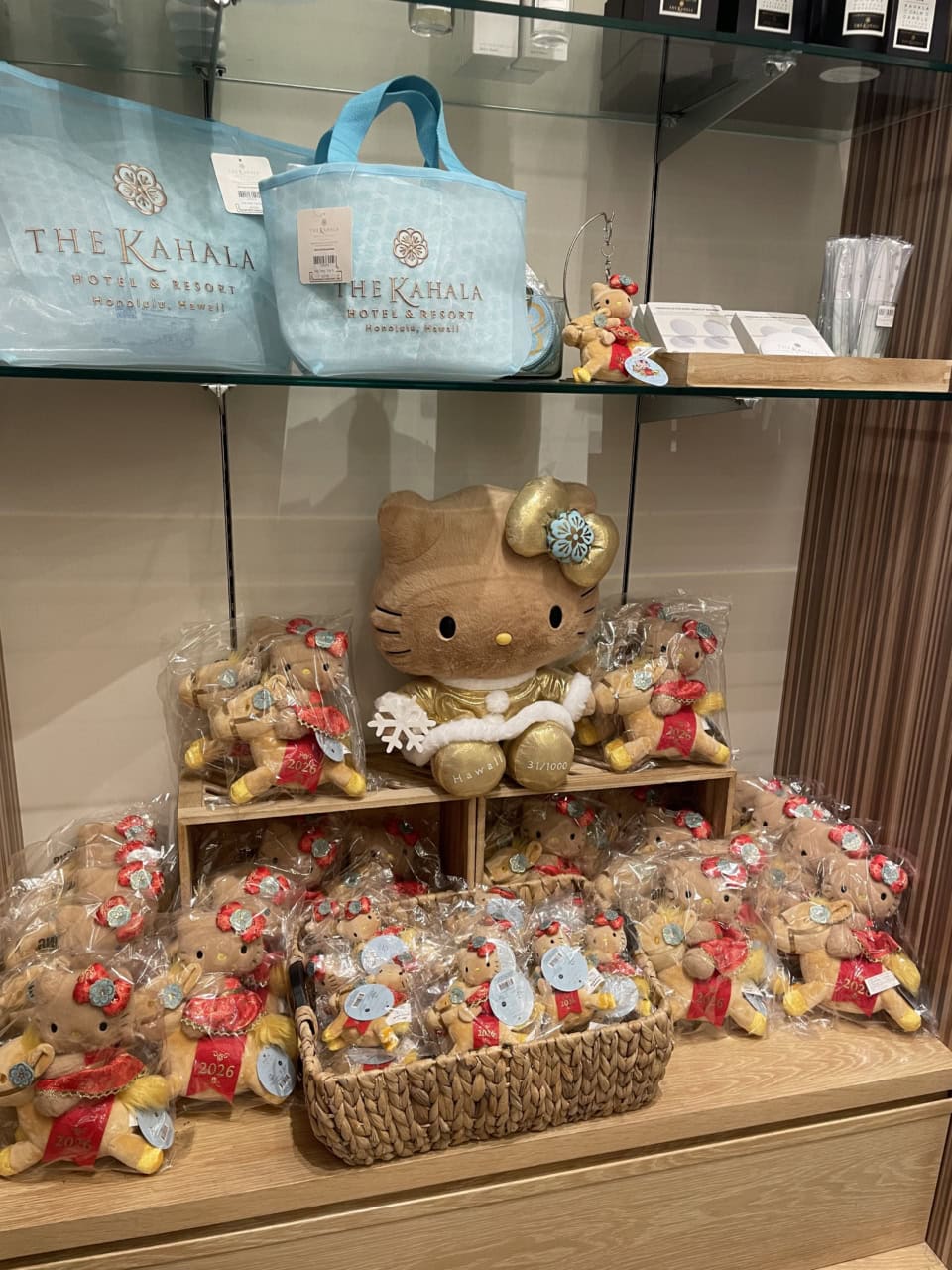 で、後日ワイキキにあるカハラのシグネチャーショップにおみやげを買いに行ったんですが、なんとそこにはカハラキティのワイキキバージョンが!! まだあまり知られていないらしく、在庫ありましたー。ラグジュアリーで愛らしいカハラのキティはホテル内とワイキキのショップでしか買えません。どちらも行ってみてくださいね。引き続きハワイのキティ事情を勝手にチェックします!