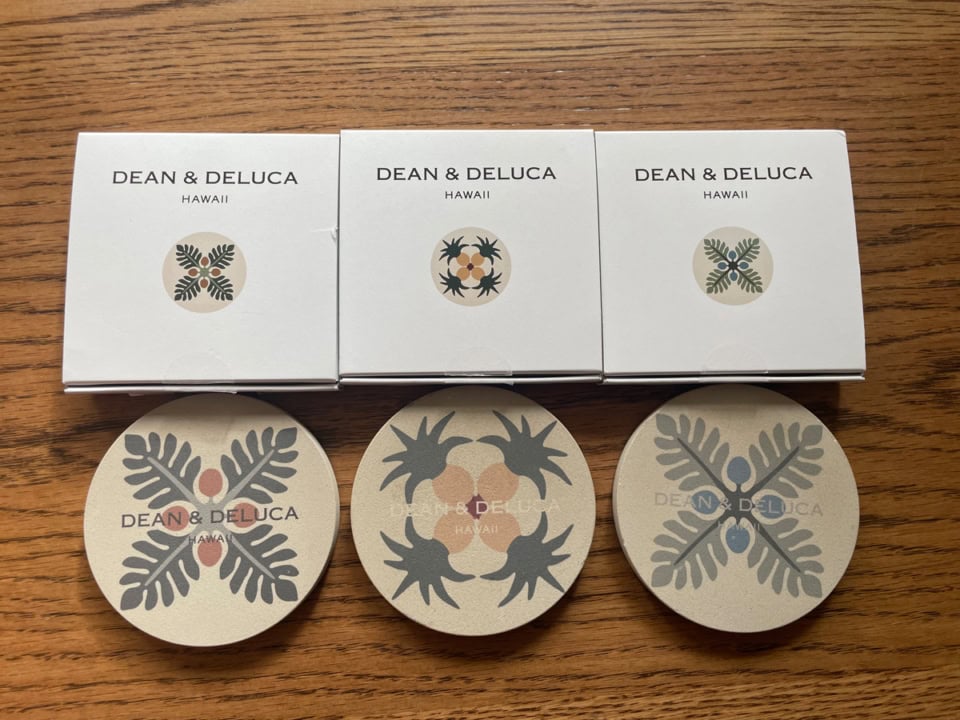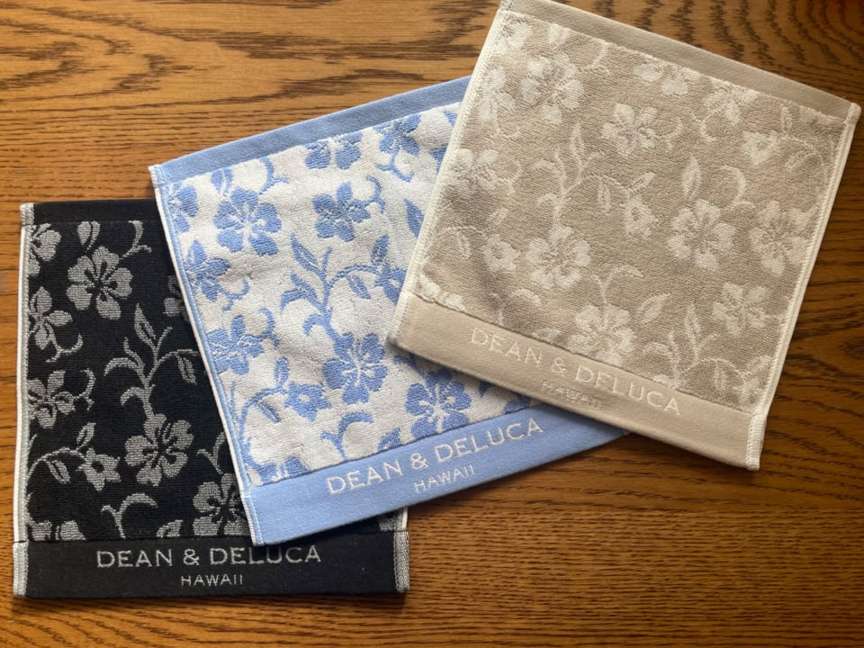 ハワイの「ディーン&デルーカ」と言えば、3店舗それぞれの限定バッグがハワイ好きにはあまりにもおなじみですよね。ここではおみやげにも最適なバッグ以外のアイテムを2つご紹介します。ひとつめは、アロハ柄のミニタオル。程よく厚めなしっかりタオル地に織りのアロハ柄。私も一枚買ってみましたが、吸水性もしっかりしていて肌触りも抜群でした。ハンカチよりミニタオル派なので、ミニタオルと言えば! であまりにも有名なフェイラーや近沢レースに代わる素敵なものを探していたんです。色味も黒、ベージュ、ブルーとシックなカラーでほどよい!