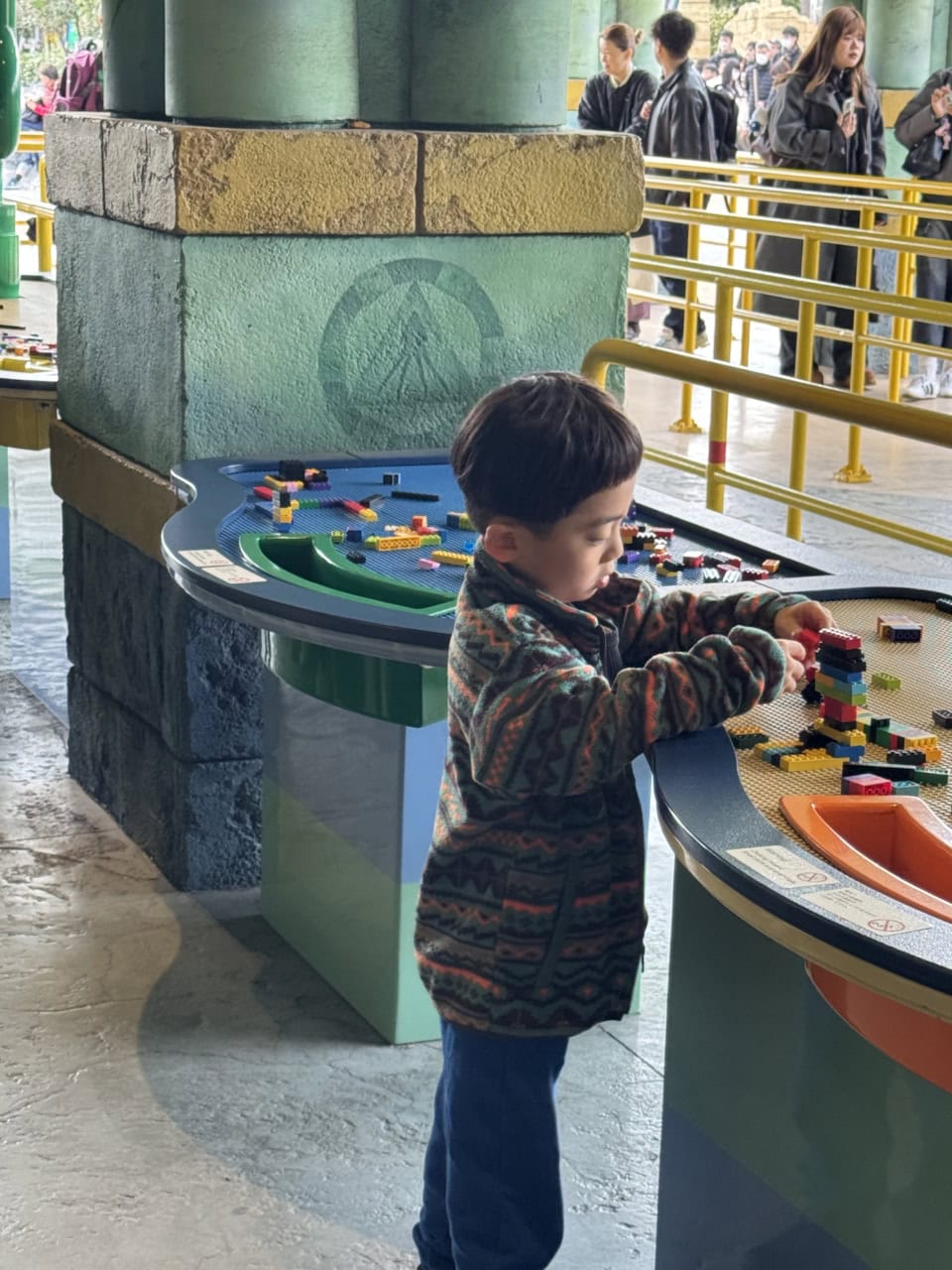 アトラクションの待ち時間もレゴで遊べるコーナーが