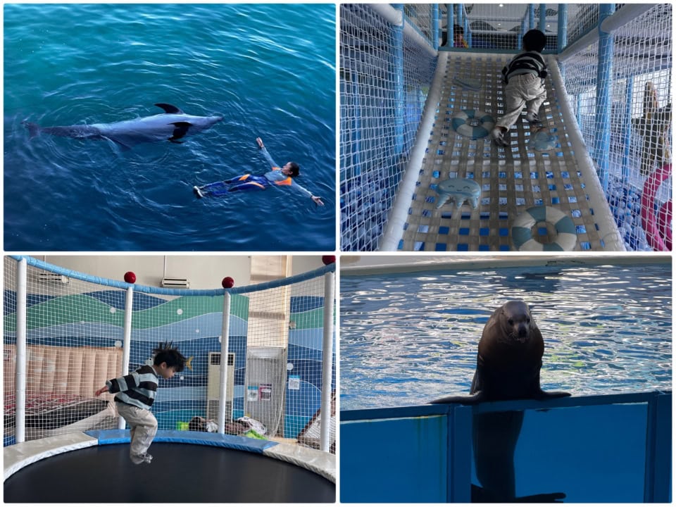 宿の近くの寄り道スポットとしてオススメしたいのは、【伊豆・三津シーパラダイス】。行く価値ありの体験・ふれあい型の水族館。素人でもわかるほど生きものたちがのびのびと暮らしているんです! アシカへのエサやり ※有料(100円)・カワウソへのタッチ体験・イルカショー鑑賞、ショータイムも2種あり、室内には子どもの遊び場まであるので子どもにとっても天国! 子どもに、帰りたくないと何度言われたか……(笑)。個人的には、自然飼育場でのびのび泳いでいるイルカの姿にとても癒やされました。我が家ではいまだに会話に登場するほどお気に入り。いつか再訪したいです。
