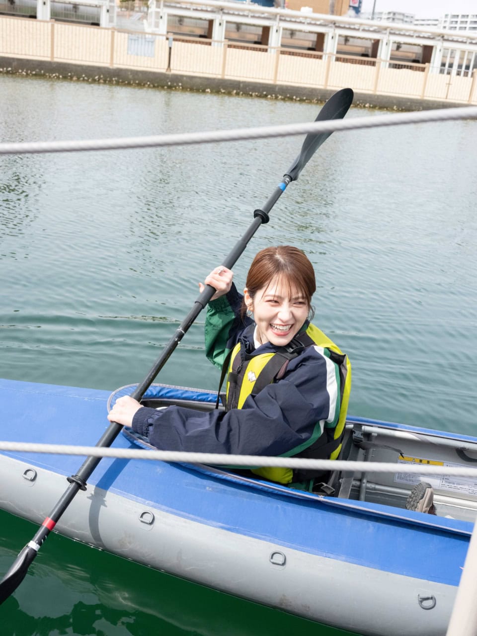 おかえりなさい! 定位置に戻るのに一苦労しながら無事到着。「楽しすぎる! 一緒に乗ると仲のよさも深まります。ぜひデートにも(笑)」と体験後はすっかりカヤック推しの若月さんでした。