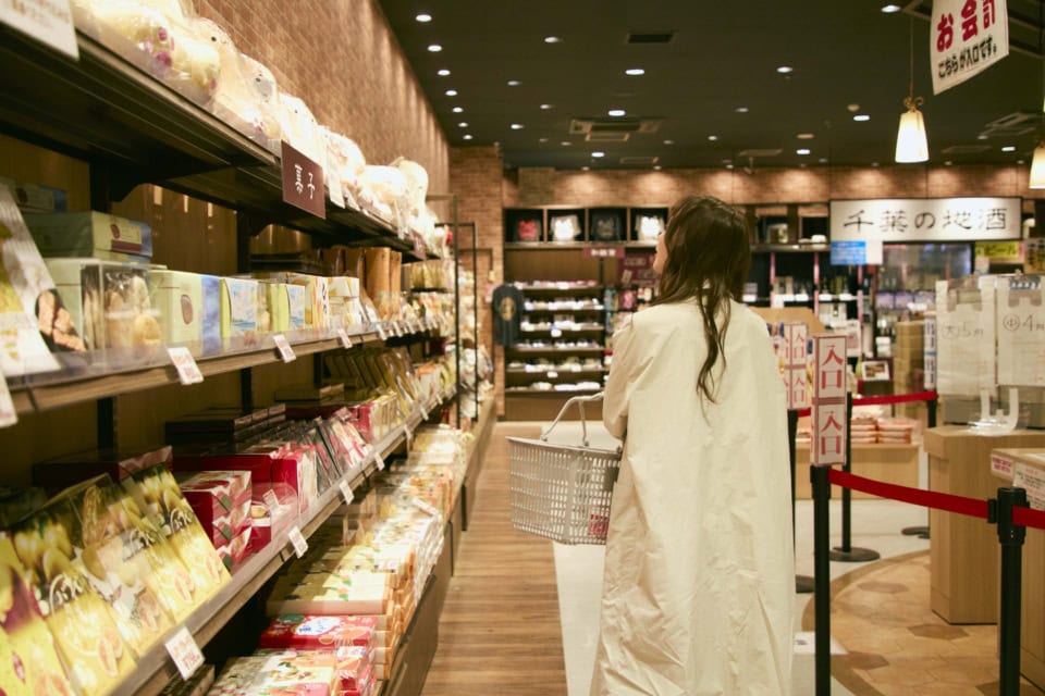 「せっかくアウトレットに来たし、家族に千葉ならではのお土産を買っていきたいな」という理央さんが最後に訪れたのは、地元の美味しいものがギュッと集結した【房総四季の蔵 旬彩】。千葉県の特産品であるピーナッツを中心に、自家製干物などの海産物やお酒など様々な名産品を購入できます。クセのあるご当地キャラクターグッズも人気!