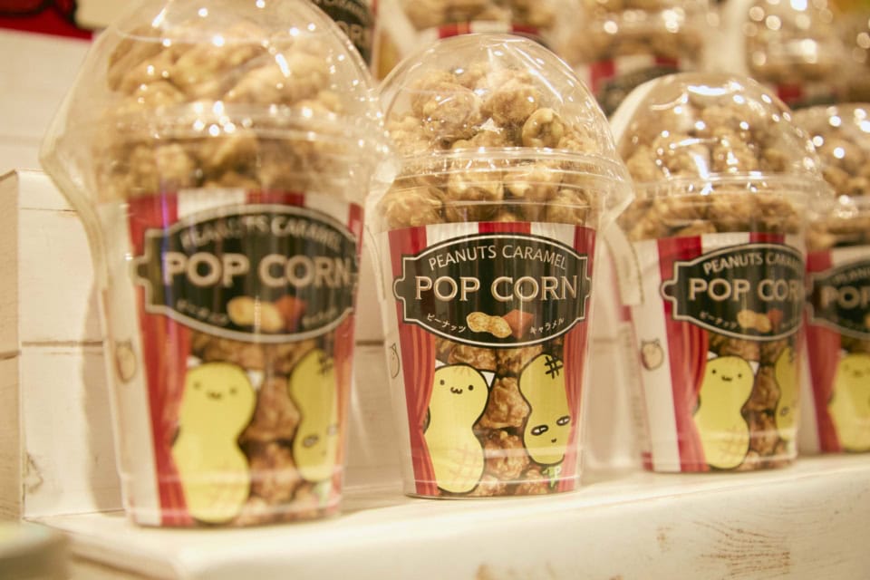 ご当地キャラクターのぴーにゃっつ(左)とPマン(右)が可愛いポップコーン