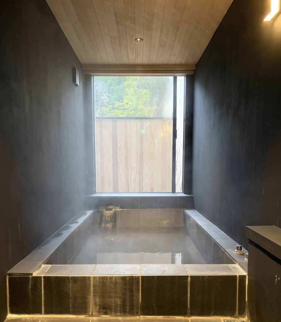 上の画像を見るとちょっと狭いかな? と思うかもしれませんが、想像以上に広く、4人で入っても余裕があるくらい。他にお客さんがいないのでよりリラックスできますし、温泉につかりながら延々とおしゃべりも楽しめちゃいます(笑)。前々から思っていましたが、女性っておしゃべりすればするほど元気になりますよね。これが元気の源だし、一番のストレス解消法な気がしました。